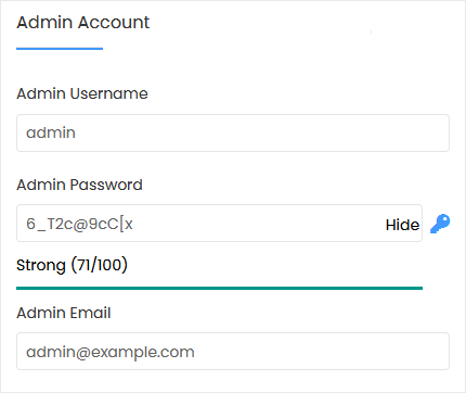 • Admin Password: Use a strong password.